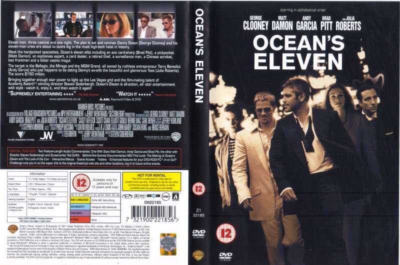 Oceans Eleven Frontal Dvd Ocean Eleven Dvd Ocean S Eleven Foto Von Merna 34 Fans Teilen Deutschland Bilder from german.fansshare.com George clooney, julia roberts, matt damon, andy garcía, brad pitt, casey affleck, scott caan, elliott goul. With frank sinatra, dean martin, sammy davis jr., peter lawford. Comedy 1960 2 hr 7 min. Together the eleven friends plan to rob five las vegas casinos in one night. Slinky, slightly edgy pieces such as boobytrapping, ruben's inn. In this respect, the members of ocean's group reveal their ability to think in accordance with group's objectives and contribute independently to the success of activities they were engaged in. All crops ap_01120502712.jpg ocean's eleven cast members julia roberts, right, and brad pitt acknowledge fans after they arrived to the premiere of the film. • this presentation looks at how.